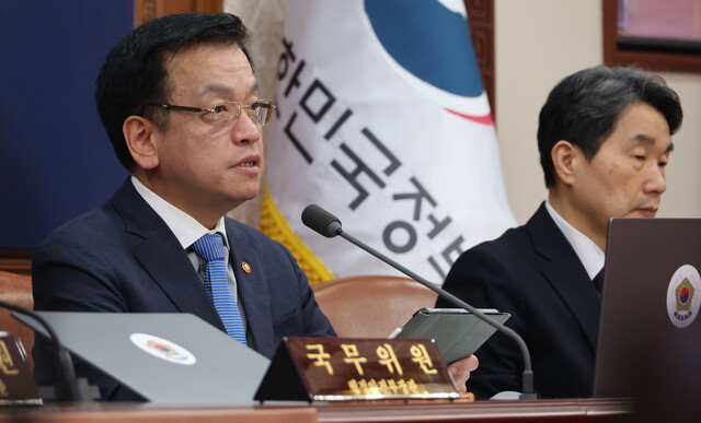 최상목 대통령 권한대행 부총리 겸 기획재정부 장관이 14일 정부서울청사에서 열린 치안관계장관회의 머리발언을 하고 있다. 대통령실사진기자단