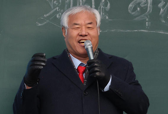 전광훈 목사가 광화문 전국 주일 연합 예배서 발언하고 있다. [사진=연합뉴스]