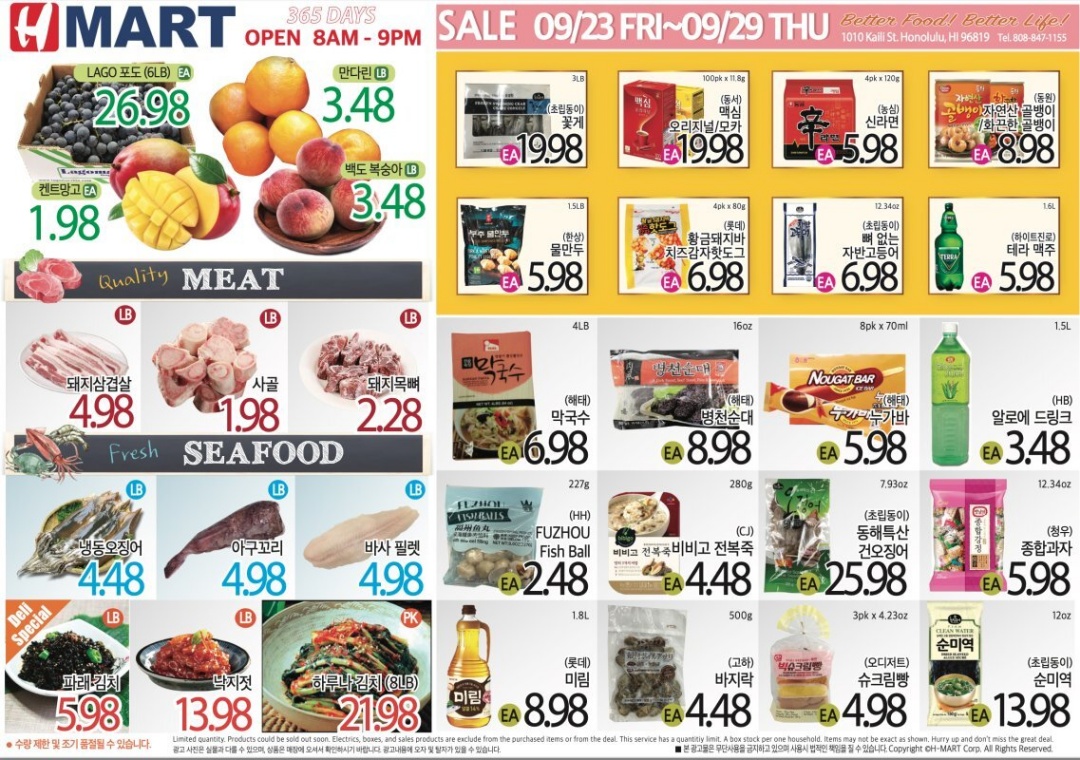 PALAMA WEEKLY SALE 하와이 한인 마켓 (9/23-9/29/2022)