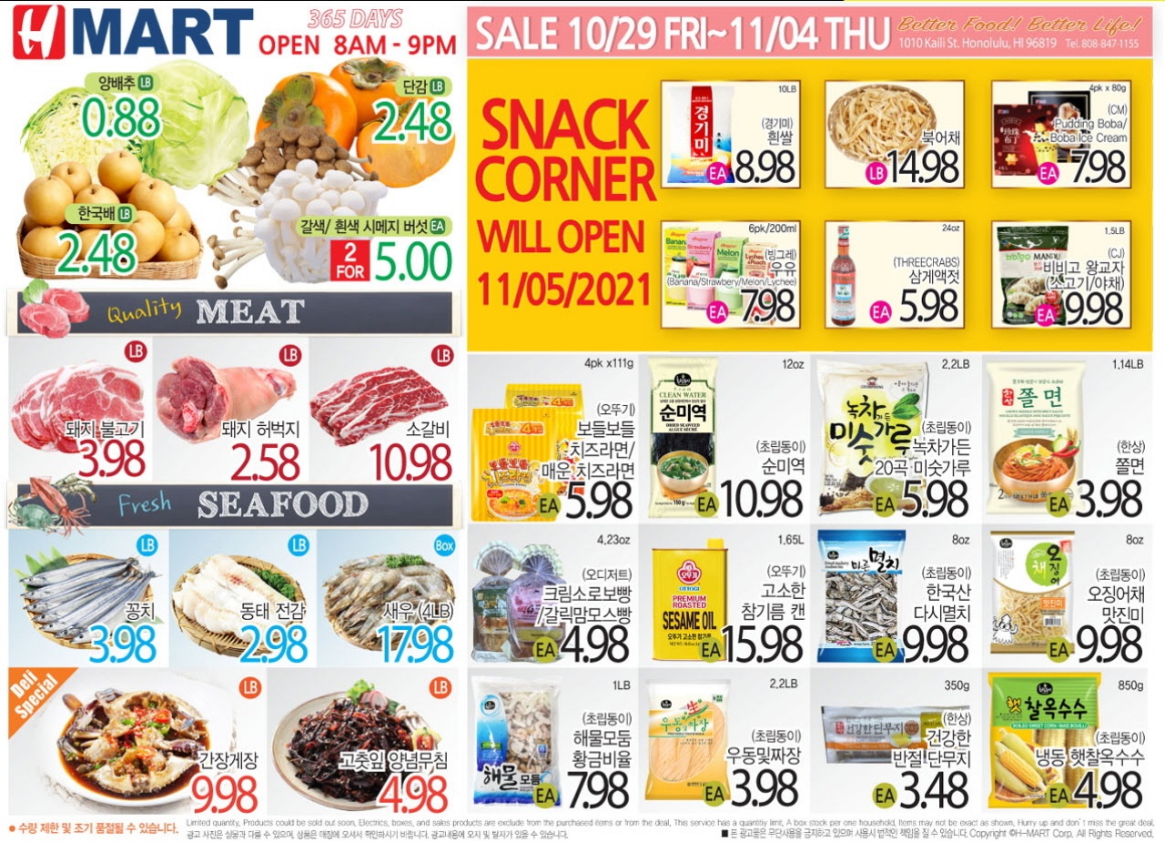 하와이 H mart 주간세일 (10/29~11/04/2021)