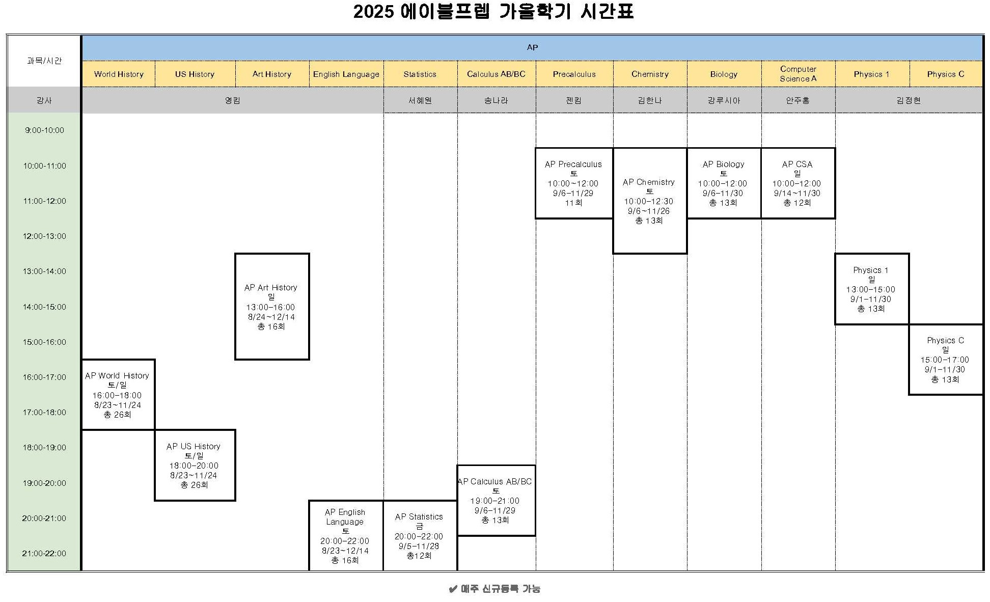 특히 이번 가을학기에 AP전문강사 영킴 선생님의 역사학 과목이 인기인데요!