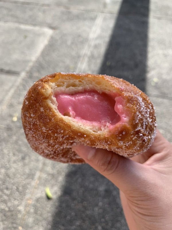 말라 사다는 구멍이없는 포르투갈 도넛입니다. 겉은 노릇 노릇하고 속은 가볍고 부드러워 아주 맛있습니다.